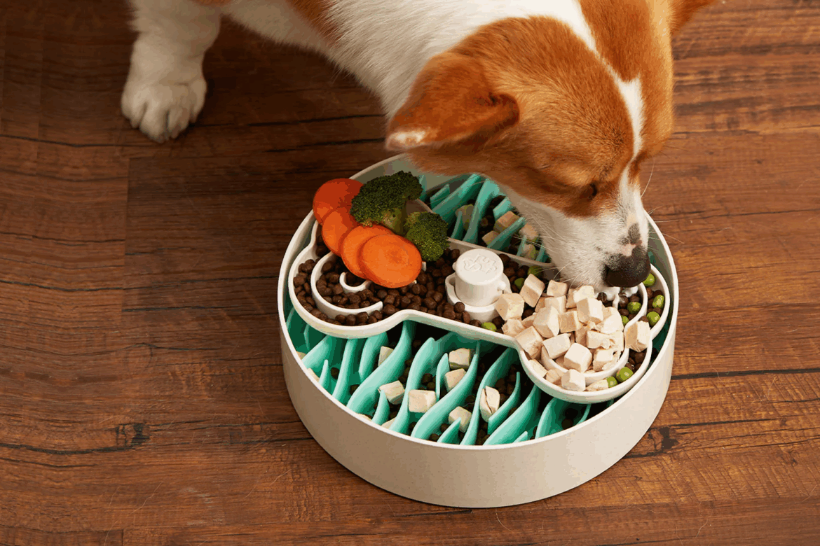 A puzzle feeder is more than a fancy food bowl — it’s a brain workout for your dog. Instead of eating from a plain dish, your dog must manipulate the toy, push levers, roll it around, or lift lids to access food.